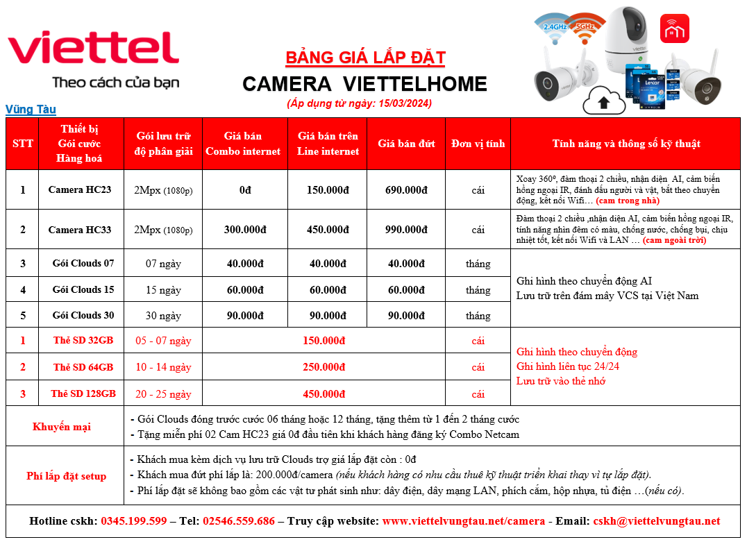 COMBO INTERNET CÙNG VỚI CAMERA CỦA VIETTEL
